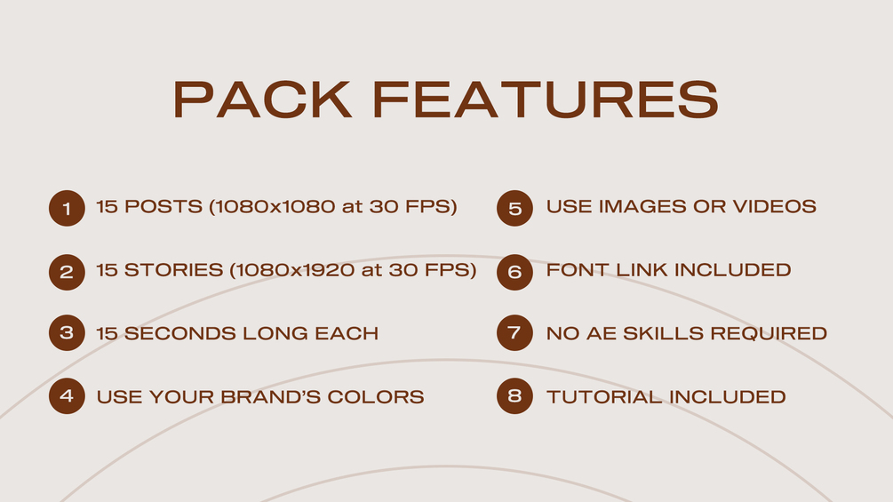 Size: 1080×1080 (Posts), 1080×1920 (Stories) at 30FPS